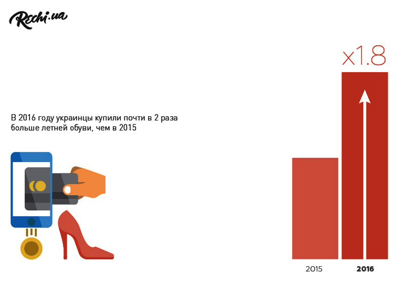 В весенне-летний сезон 2016 года украинки купили в 1,8 раз больше пар обуви премиум-сегмента, чем в 2015.