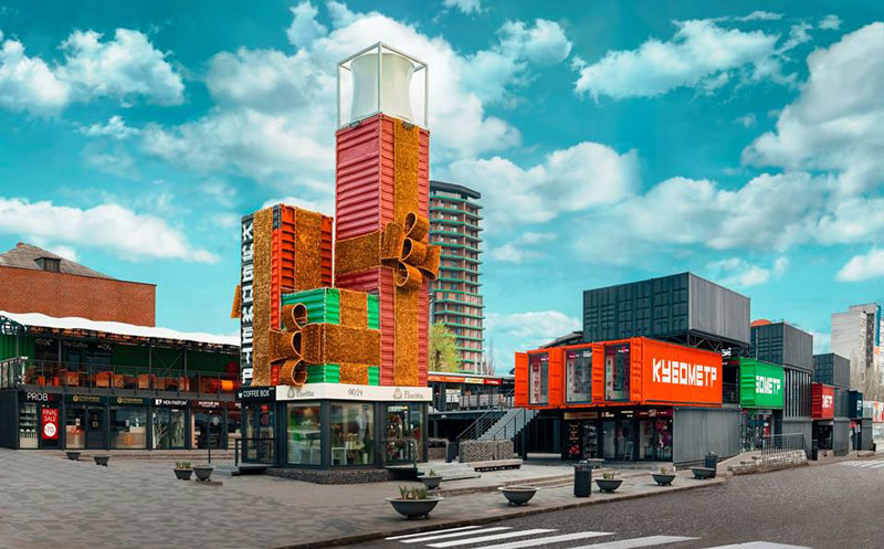 Кубометр – уникальный для Украины торговый комплекс формата Pop-up Shipping Container Center, полностью состоящий из морских 40-футовых контейнеров, построен в самом центре Днепра, на пересечении наиболее оживленных пешеходных улиц, рядом с МОСТ-сити.