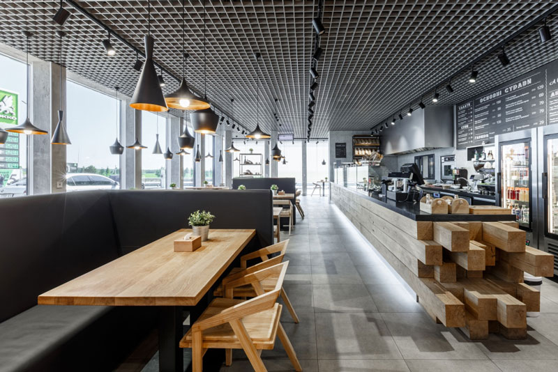 Технологические процессы в ресторане построены с учетом потребностей путешественников – блюда здесь выдаются быстро, что экономит время гостей. Посетителей ждет просторный зал с отрытой кухней: можно рассматривать элементы атмосферного декора и наблюдать за процессом приготовления блюд.