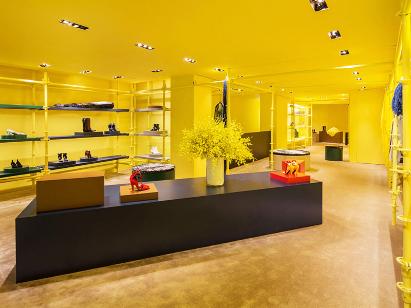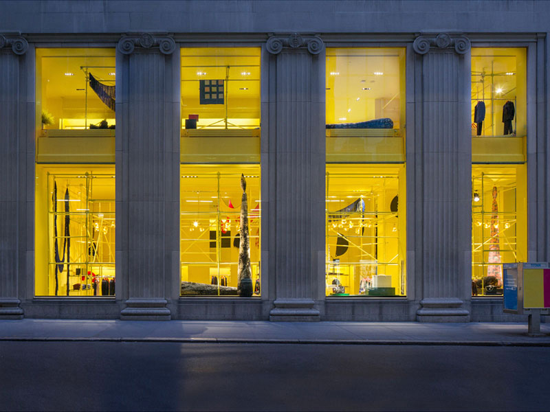 На очереди новый проект Руби для Симонса и бренда Calvin Klein — дизайн интерьера флагманского магазина бренда на Мэдисон-авеню. Все три этажа выкрасили в ярко-желтый цвет, соорудили строительные леса, повесили черные ведра и оставили свисать бахрому с потолка (как аллюзию на американский флаг). Экспозиция временная, и за ней последует уже настоящий капитальный ремонт бутика.