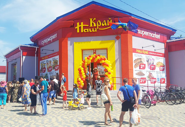 Справка: Сеть супермаркетов "Наш Край" - украинская сеть розничной торговли, один из основных проектов инвестиционной группы «Volwest Group» (Луцк). Сеть представлена в трех форматах: супермаркет, магазин у дома и экспресс. Сейчас сеть «Наш Край» является лидером рынка франчайзинга ритейла Украины и занимает третье место по количеству торговых точек. Первый магазин начал свою работу в 2001 году. С 2004 года сеть развивается по франчайзингу.На конец июня 2017 сеть насчитывает 221 торговое заведение в 17 областях Украины.