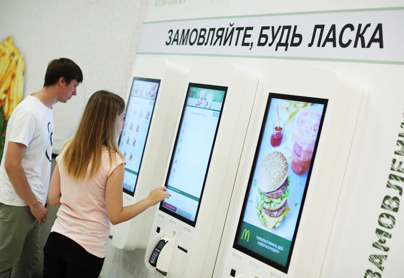 Особенностью нового МакДональдз® стало оснащение 3-х терминалов самообслуживания, благодаря которым посетители имеют возможность не спеша ознакомиться с меню в электронном формате, самостоятельно оформить свой заказ и оплатить его банковской картой или наличными на кассе.