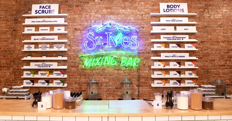 В качестве основной аудитории рассматриваются миллениалы, которые ценят не только продукт, но и опыт. Посетители выбирают ингредиенты и смешивают их вместе со специальным работником. На баночке пишется имя заказчика. В ходе создания скраба, специалист консультирует посетителей об используемых продуктах. После создания косметического средства клиенты St. Ives могут сфотографироваться в специальной фотобудке.