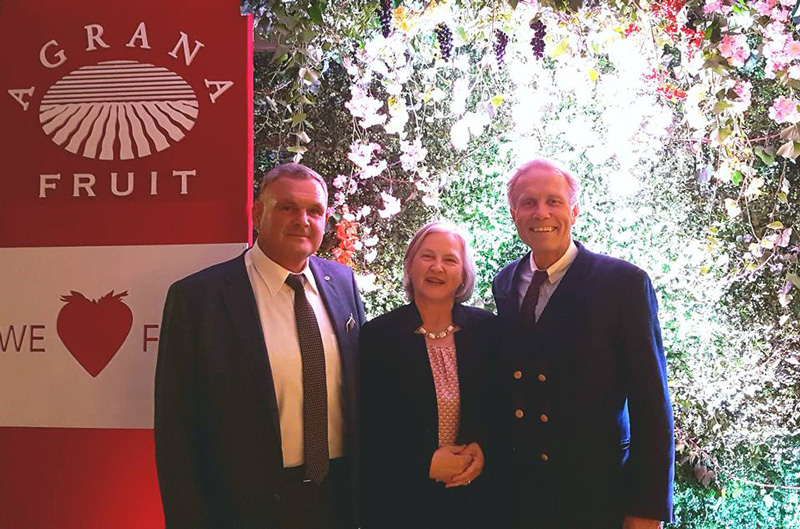 На снимке: Генеральный директор «Аграна Фрут Украина» Владимир Семенюк (слева), госпожа посол республики Австрия в Украине Гермионе Поппеллер (в центре), член совета правления директоров Аграна Фрут Херберт Лавати (справа).