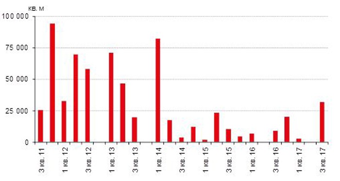 Объем сделок на офисном рынке Киева за 3-й квартал составил 41,3 тыс. кв. м, за первые три квартала в целом – 131,8 тыс. кв. м. Эти значения на 7-15% ниже показателей 2016 года, но более чем на 30% превосходят значения 2014-2015 годов. По-прежнему в структуре сделок лидируют компании сектора информационных технологий.