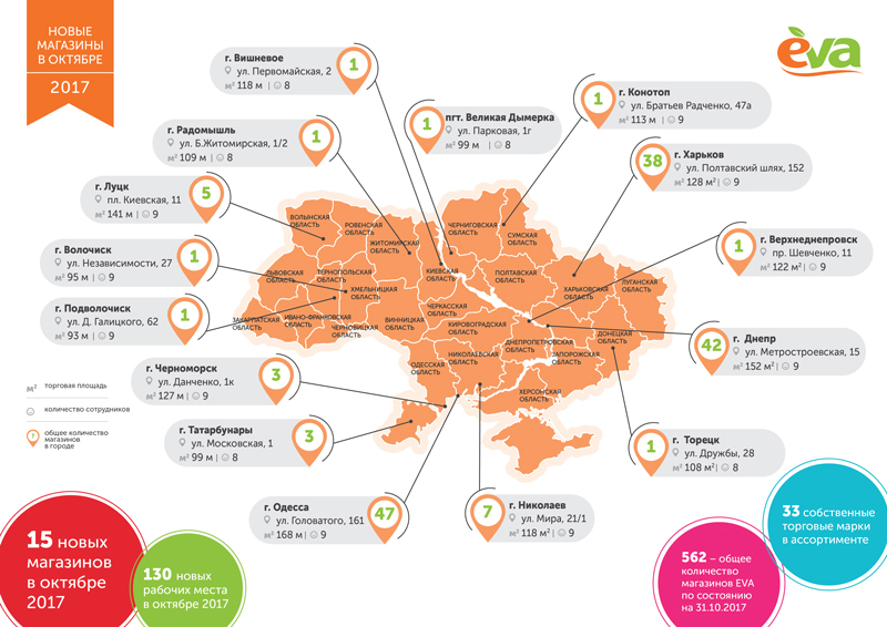 EVA укрепляет позиции на Юге, Западе и в Центре Украины (Инфографика)