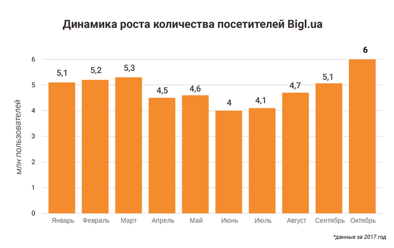 В октябре Bigl.ua посетило рекордное количество пользователей — 6 млн.