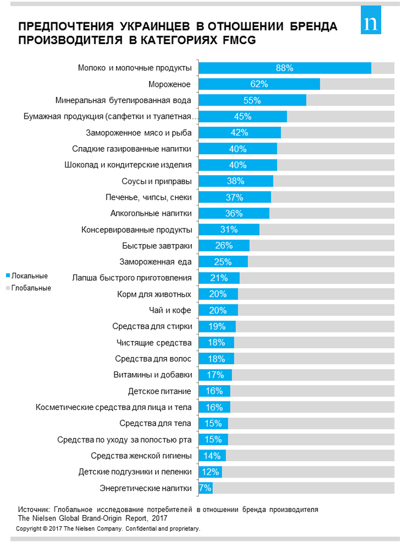 Новое глобальное исследование Nielsen потребительских предпочтений относительно происхождения бренда The Nielsen Global Brand-Origin Report 2017 года показывает, как отечественный потребитель делает свой выбор в продуктах питания и непродовольственных товарах в зависимости от того, где сделана продукция.