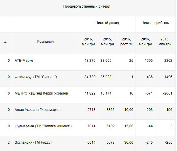 Теги: Топ-15, доходные продуктовые сети, Украина