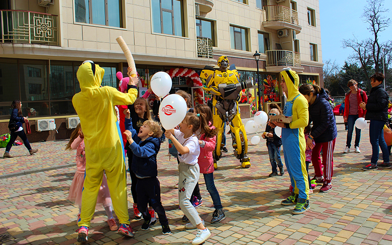 Праздник открытия больше был похож на семейный праздник, чем на мероприятие по открытию универсама. Пока родители знакомились с широким ассортиментом, детей развлекали веселые аниматоры.