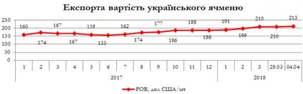 "Главной причиной уверенного роста стоимости ячменя, за последние месяцы, является нестабильный спрос со стороны Саудовской Аравии, которая остается ключевым импортером этой зерновой культуры в мире. В 2017 году Украина экспортировала в эту страну около 2,07 млн тонн ячменя. К сведенью, это приблизительно 57% всего экспорта", — сообщила аналитик УКАБ Ольга Харабара.