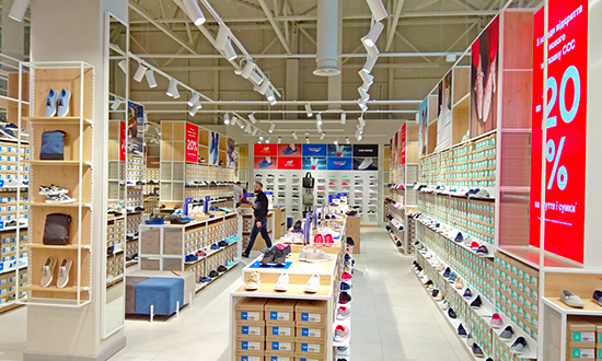 Но новый концепт «меньше переполненных полок — больше свободного пространства» успешно реализован благодаря разделению товара в магазине на зоны: для мужчин, женщин, детей и пространство для спортивной обуви и сумок.