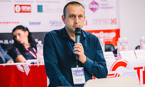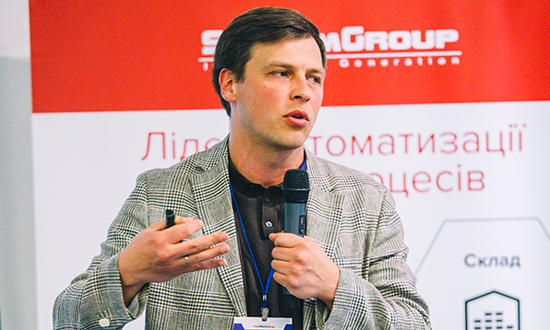 В зале, где тематика выступлений была посвящена транспортной логистике, первым выступил с докладом Александр Рымар, директор по логистике Компании «UTEC Logistics». Александр выступил с провокационным заявлением, что авиаперевозки обходятся дешевле, чем автомобильные перевозки, и предложил к рассмотрению практический кейс, чтобы было понятно, при каких условиях и как авиалогистику можно осуществить. Докладчик предложил посмотреть на рынок логистики с точки зрения экспортера и на практическом примере показал, как правильно экспортировать товар небольшими партиями. Оказалось, что для небольшой партии в 100-150 кг из Киева в Варшаву, авиаперевозка будет немного дешевле, и такая перевозка дает более высокий сервис и скорые сроки.