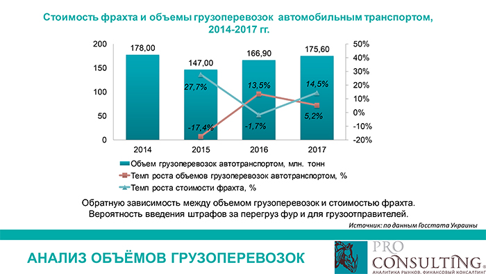Спикер представил аналитику по динамике средней стоимости фрахта за 1 км 20-тонным автомобилем в 2014-2017 гг.