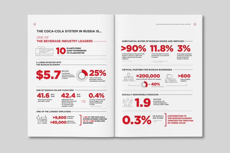 Так, показательным примером является аналитические отчеты компании Coca-Cola, которые берут на заметку себе многие графические дизайнеры со всего мира.