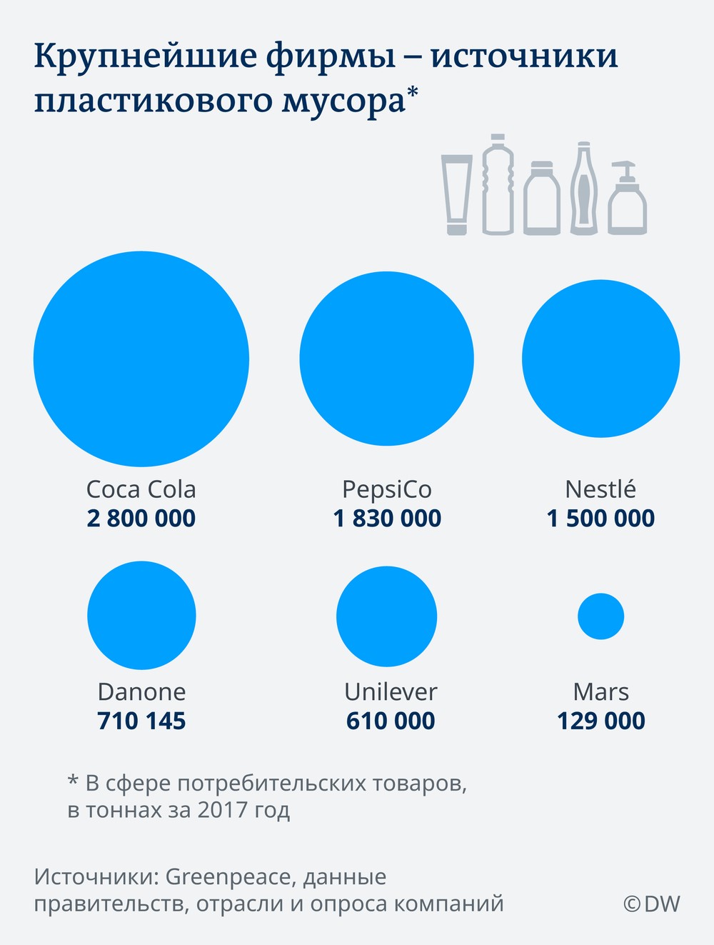 Среди компаний, которые подписались под инициативой, провозглашенной на конференции в Бали в конце октября посвященной защите мирового океана — американская Coca-Cola, французская Danone и голландско-британская Unilever. Именно их пластиковые отходы по данным Greenpeace занимают лидирующие место.