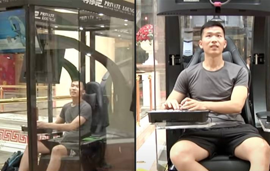 Спеціальні скляні конструкції для чоловіків, які не захоплюються спільним шопінгом, з'явилися на площах торгово-розважального центру Global Harbour у Шанхаї. Для представників сильної статі адміністрація ТЦ встановила в кабінах зручні крісла, монітори, торговий автомат, комп'ютери та надала доступ до Netflix і безлічі ретро-ігор з 90-х.