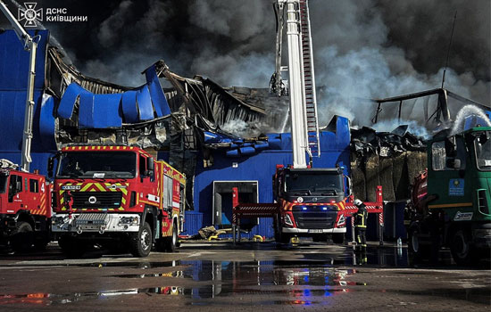 Масштабна пожежа в логістичному центрі «Епіцентр» на Київщині після влучання дрона