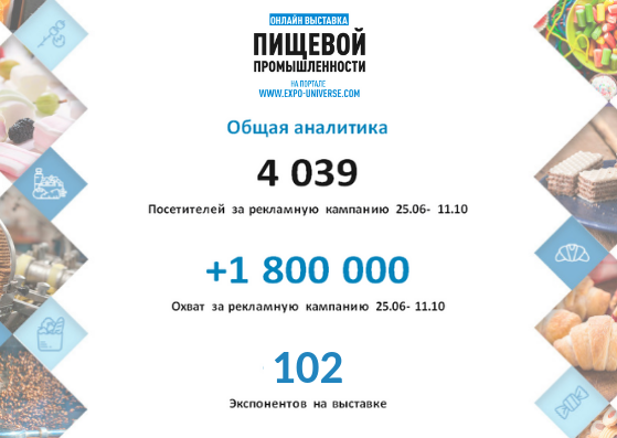 Подводя итоги «Онлайн выставки пищевой промышленности 2018» можно утверждать, что она прошла на высоком уровне. Уже есть первые заключенные договора и уже совсем скоро состоятся первые поставки продукции. Многие экспоненты остались довольны результатом и готовы принять участие в следующей выставке!