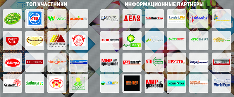 Национальная сеть супермаркетов «АТБ», ТМ «Сто пудов», ПКГ «Лесная сказка», «Конд-класс», ТМ «Sweet Arte», ООО «Промсервиспак», ПАО «Барский машзавод», ТМ «Ласочка», ООО «Суперлакомка», ТМ «Lekorna», ОАО «Полимиз», «СВИТС-7», ТД «Золотая миля», «Роська», ТМ «Pekar-konditer», ТМ «ТЕРРА», ТМ «ИЧНЯ», «Фабрика бакалейных продуктов», Украинский клуб экспортеров, ТОВ «Самшит ЛТД», ТМ «Роса», «WOG», ТОВ «Есаром Юкрейн», ООО Украинский Ритейл «Брусничка», «Солодка долина», «Пря-Пря» (ТОВ Белфи), ТОВ «Лев-Украина», ЧП «Мидияком», «Рекламный магнит», ООО «ДЕФОШ» и многие другие.