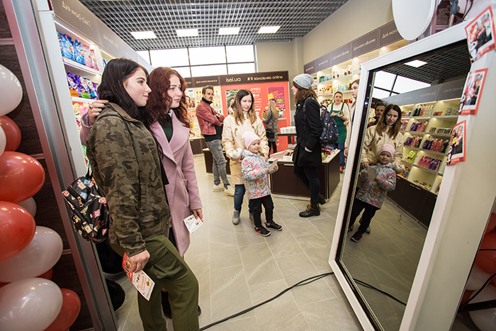 Но главным сюрпризом открытия стало интерактивное зеркало! Умное зеркало делало гостям фото и мгновенно загружало их в сеть Facebook, а для желающих – распечатывало снимки на память!