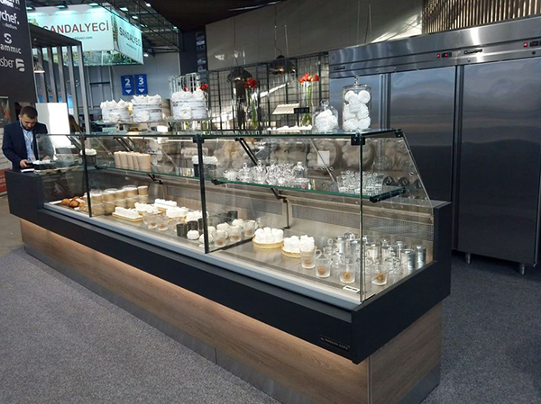 Несмотря на то, что в выставке сегмента НоReСa компания участвует впервые, холодильные шкафы и витрины, столы для пиццы и модули для приготовления хот-догов, кондитерские витрины, шкафы для напитков в течение трех экспозиционных дней ... раскупили! Выставочный стенд 1А224 Modern-Expo Group отличался не только современным, европейского уровня оборудованием для профессиональной кухни, но дизайном и очень оригинальным представлением холодильных витрин от департамента гостеприимства компании Modern-Eхро Group: все они были с десертами, поэтому и эта вкусная экспозиция не оставила равнодушной посетителей стенда.