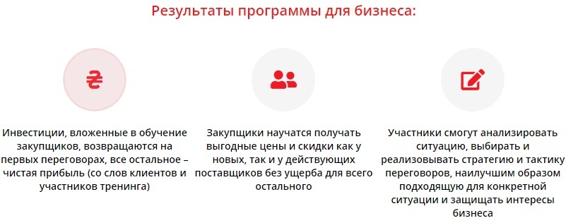 Позволяет увидеть на практике стратегии и тактики профессиональных переговорщиков и закрепить на практике полученных на тренинге знания