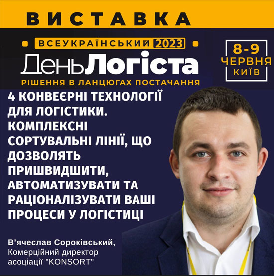 В'ячеслав Сороківський, комерційний директор асоціації KONSORT, виступить із доповіддю «Чотири конвеєрні технології для логістики. Комплексні сортувальні лінії, що дозволять пришвидшити, автоматизувати та раціоналізувати ваші процеси в логістиці».