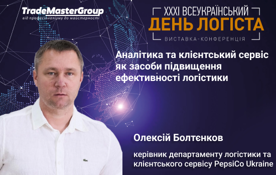 На найбільшій логістичній виставці України «XXXІ День Логіста», яка відбудеться 28-29 листопада у ВЦ «АККО Інтернешнл» (м. Київ, Берестейський, 40-Б), виступить Олексій Болтєнков, керівник департаменту логістики та клієнтського сервісу PepsiCo Ukraine.