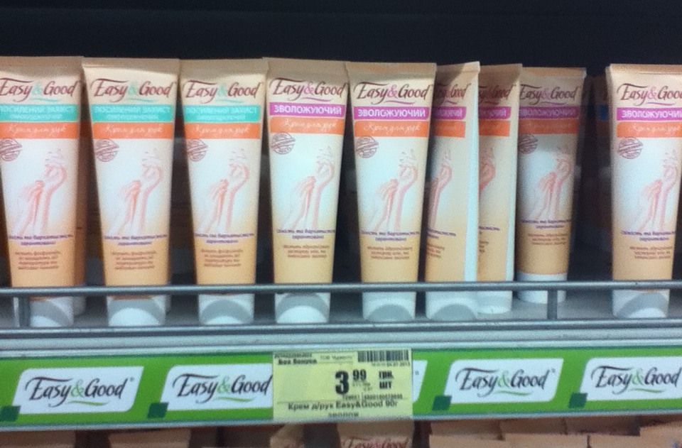 Крем для рук собственной торговой марки Fresh&Easy (рис.6) для сети гипермаркетов «Караван» производит «Концерн «Фреш Ап». Елена ГЛОТОВА, директор производственного департамента компании, отвечая на вопрос, как относится производитель СТМ, получая заказ на производство «копии», считает, что производственное предприятие не может диктовать розничной сети, что нужно продавать, и как должен выглядеть дизайн СТМ. Что касается внутреннего содержания, то продавец может высказать пожелания по активным компонентам и свойствам готового продукта, а производитель, в свою очередь, учитывает данные пожелания.