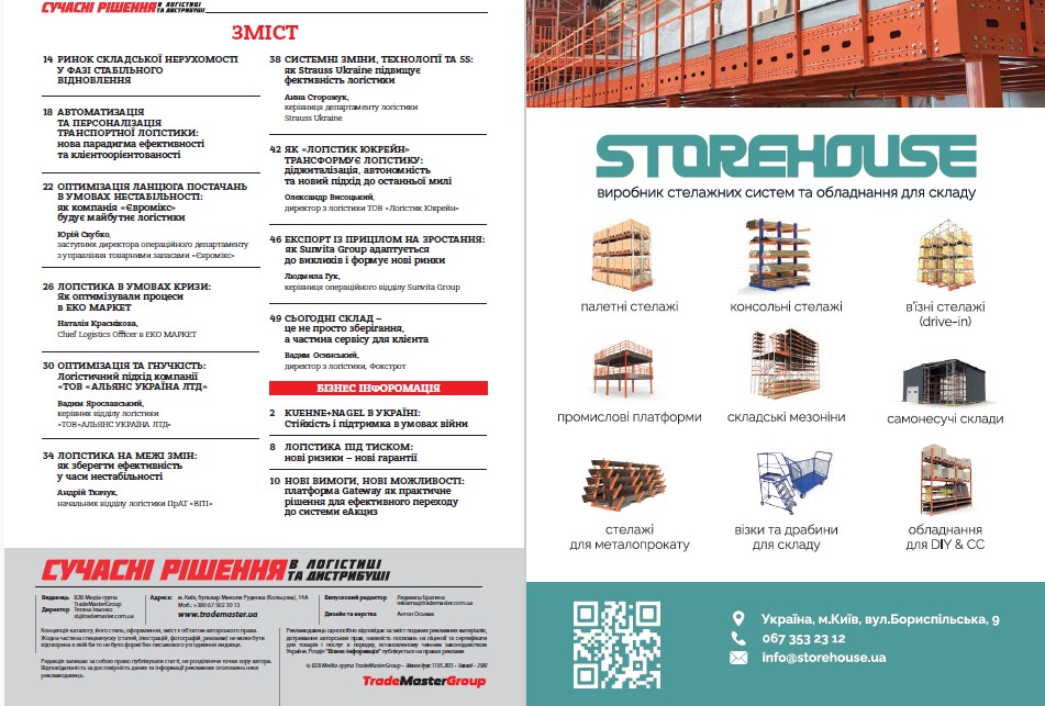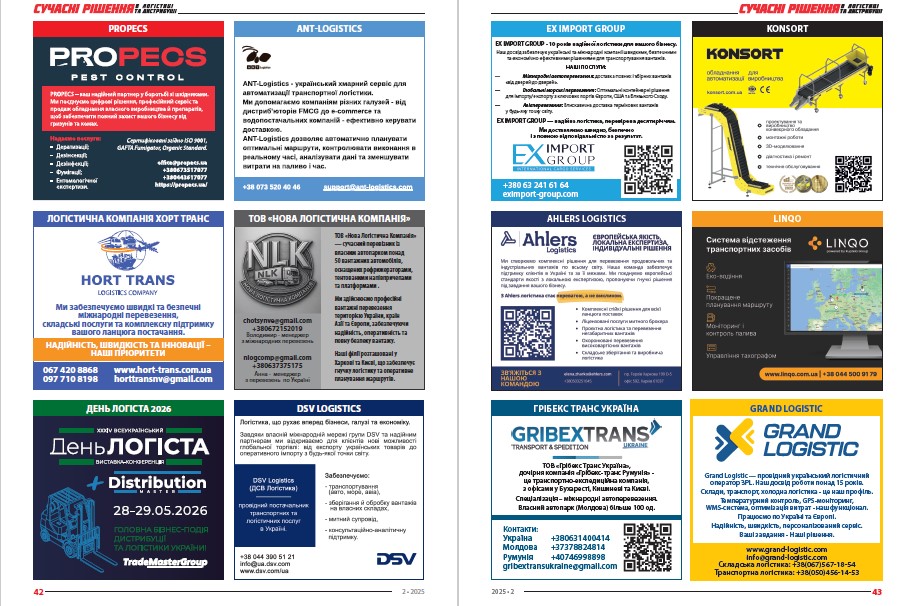 Щорічно в рамках Всеукраїнського Дня Логіста, що у 2026 році пройде 28-29 травня в форматі виставки ми випускаємо Ексклюзивне для України спеціалізоване Видання, наповнене професійними ідеями та рішеннями з оптимізації бізнес-процесів у ланцюгах постачань – журнал «Сучасні рішення в Логістиці&Дистрибуції – 2026 травень».